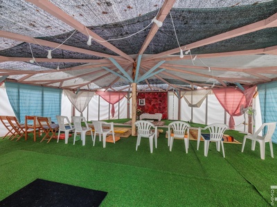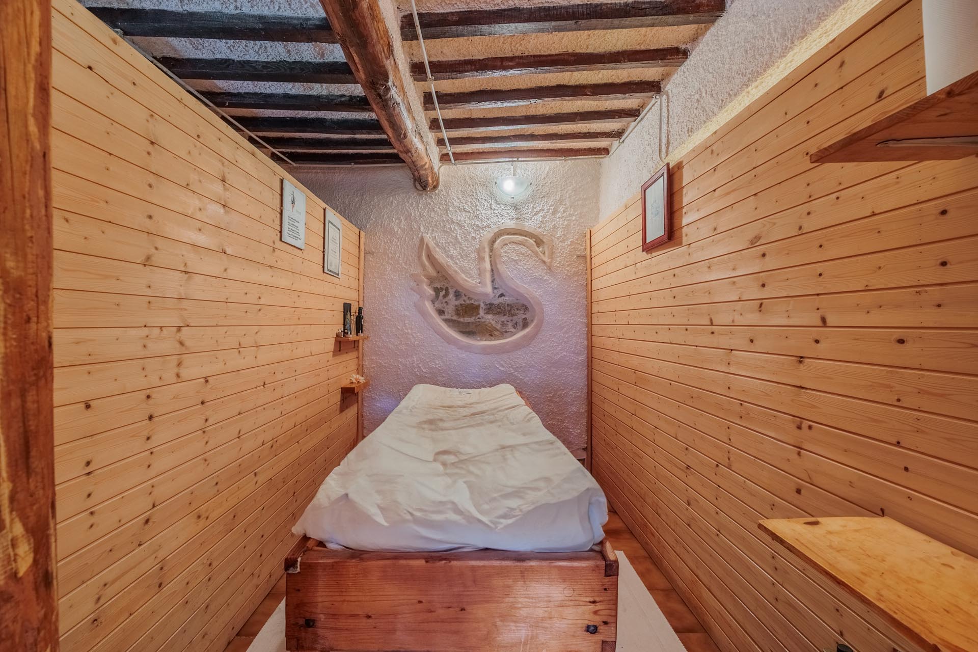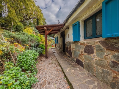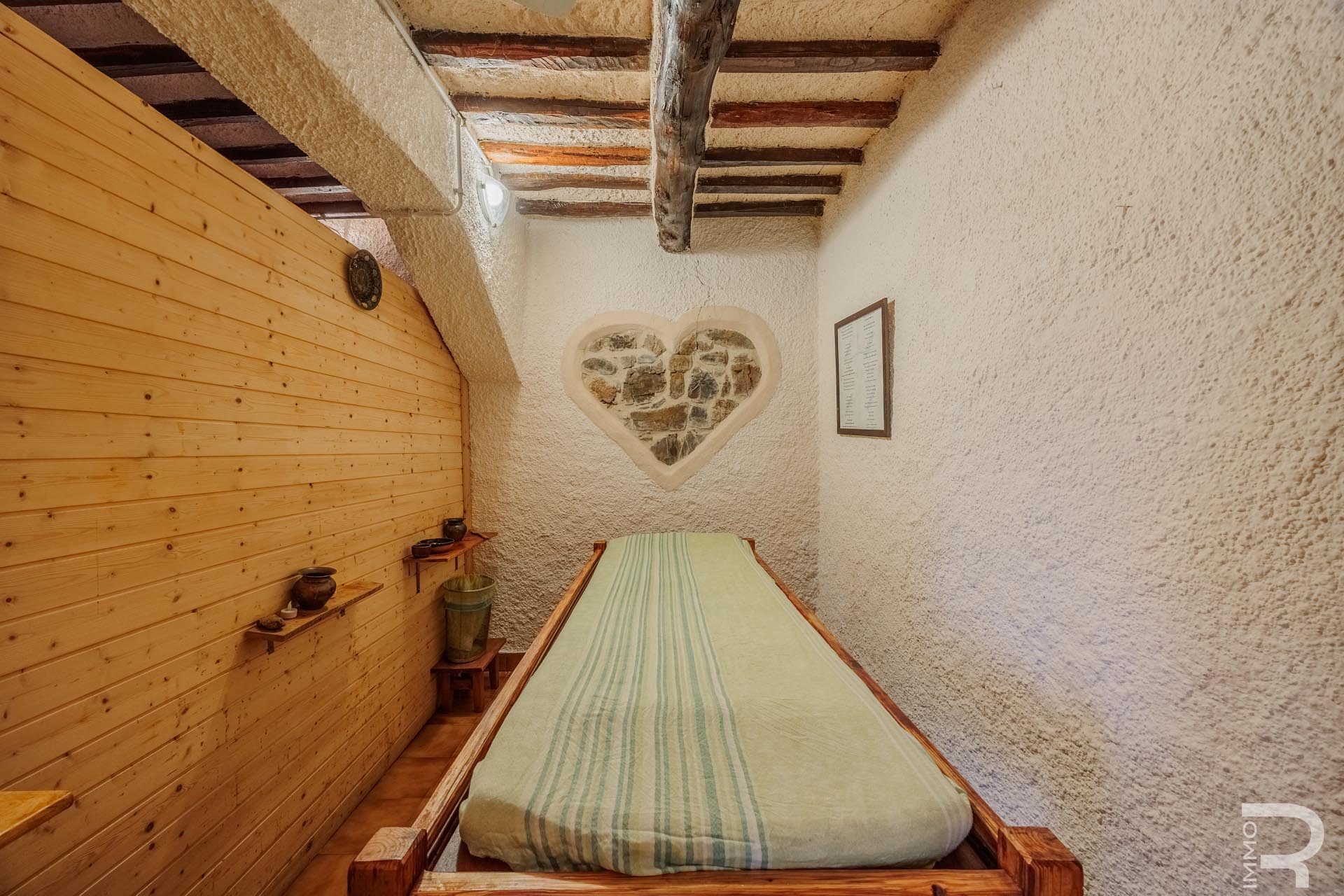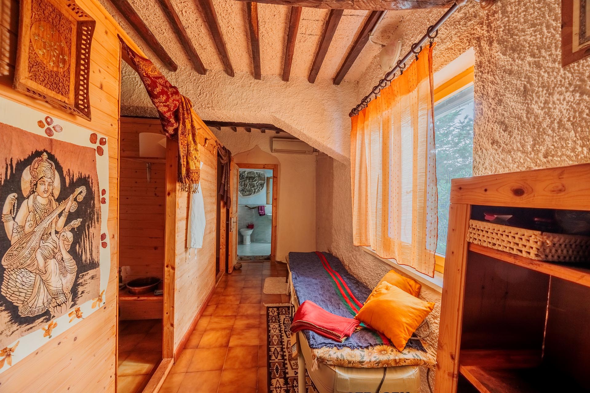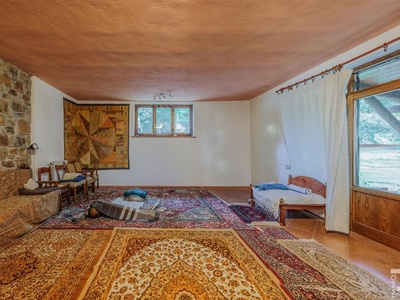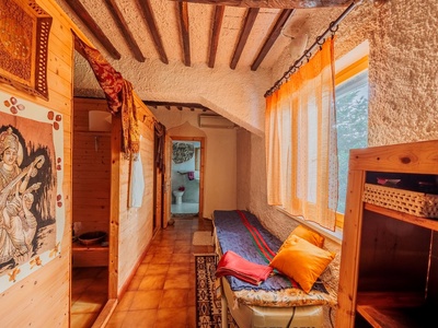 La casa principale offre un accogliente appartamento con due camere da letto, un confortevole soggiorno e una cucina. Al piano terra sono inoltre disponibili una spaziosa cantina e un'area appositamente attrezzata per attività ayurvediche, ideale per offerte benessere, seminari o come rifugio personale.