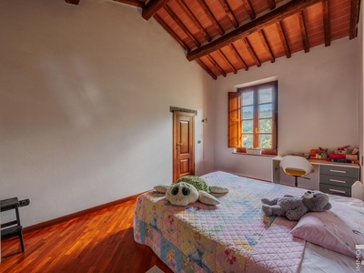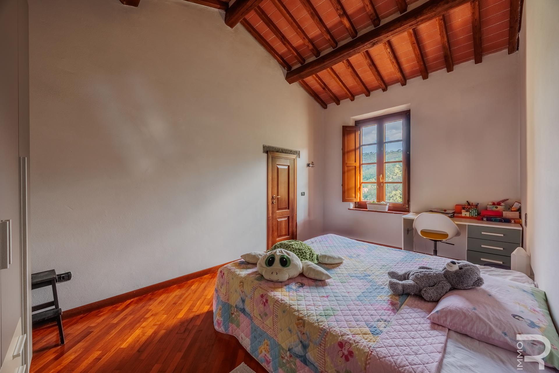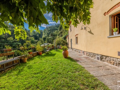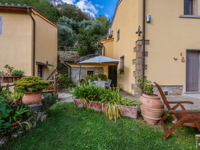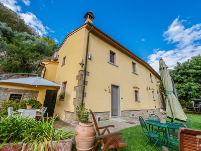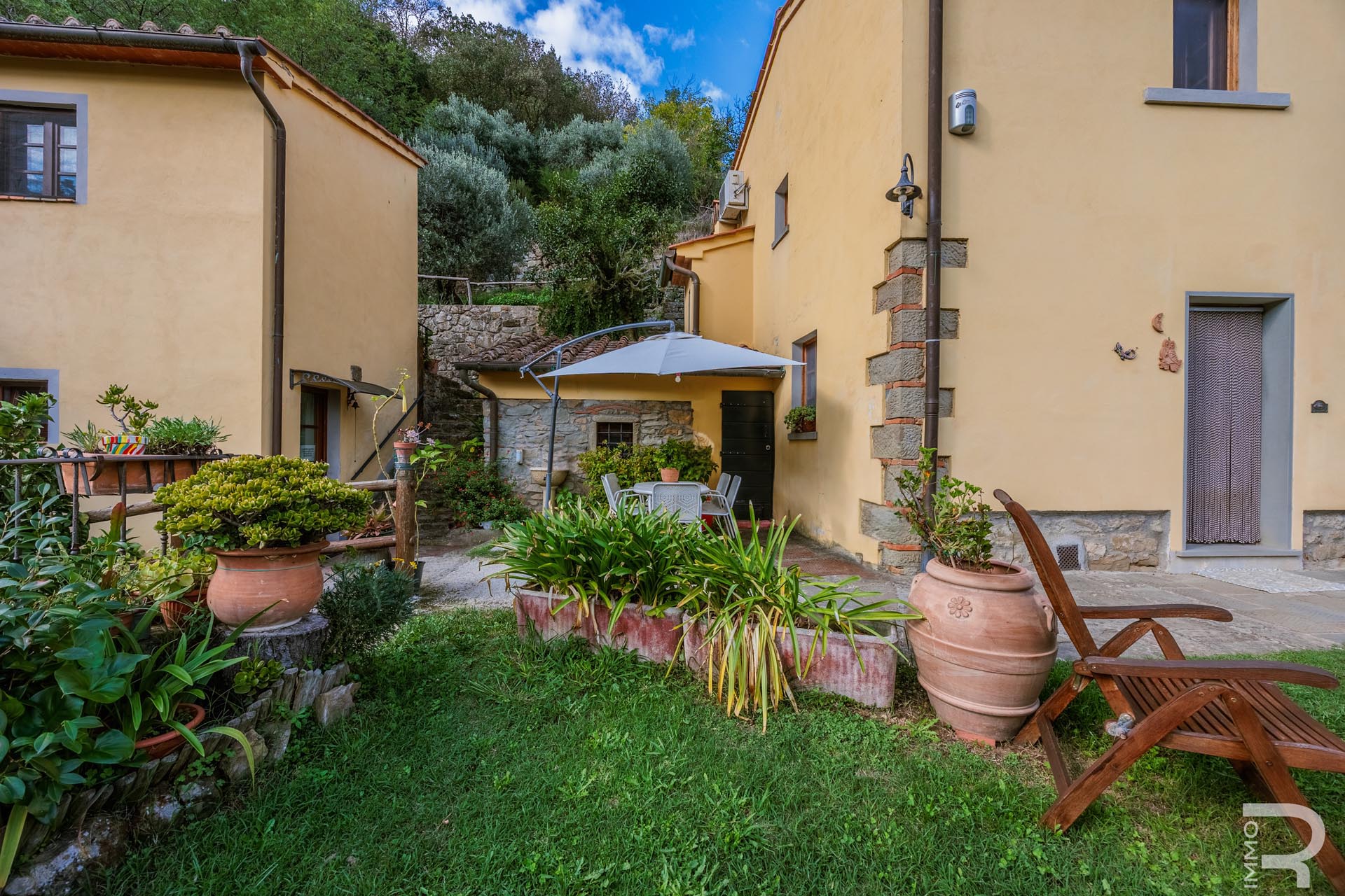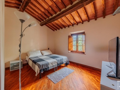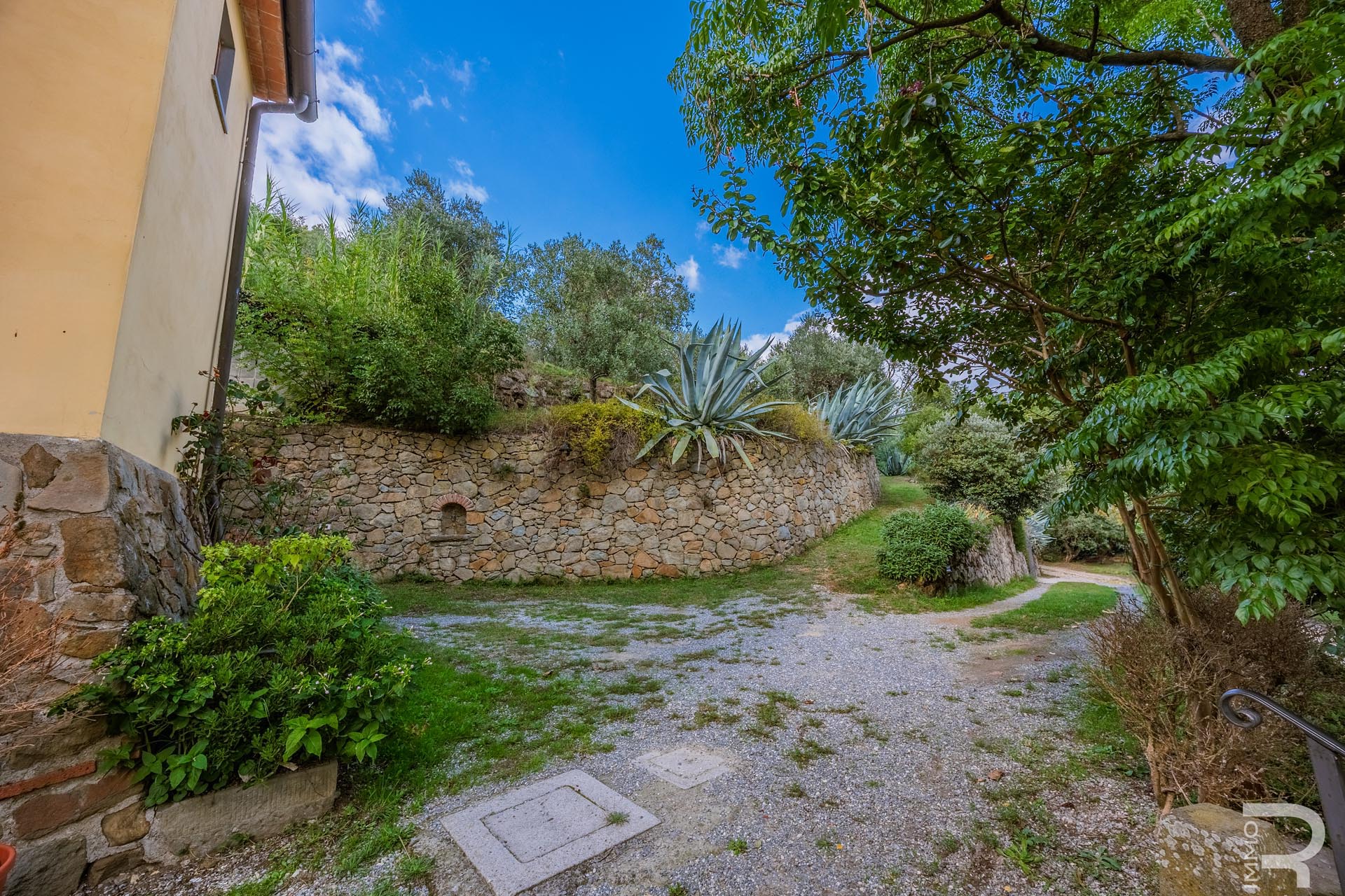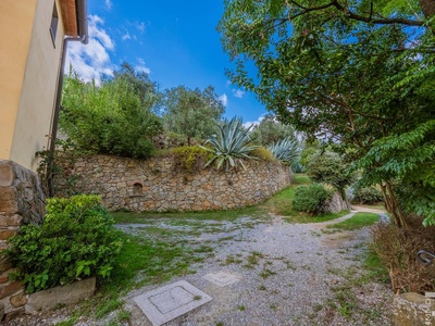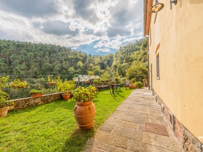 Gli spazi esterni sono terrazzati e progettati con tradizionali muri a secco, tipici della cultura edilizia toscana. Un giardino ben curato con area barbecue e forno a legna invita a godersi la vita di campagna e offre spazio per serate conviviali all'aperto. Qui è possibile trascorrere ore tranquille o festeggiare con la famiglia e gli amici.