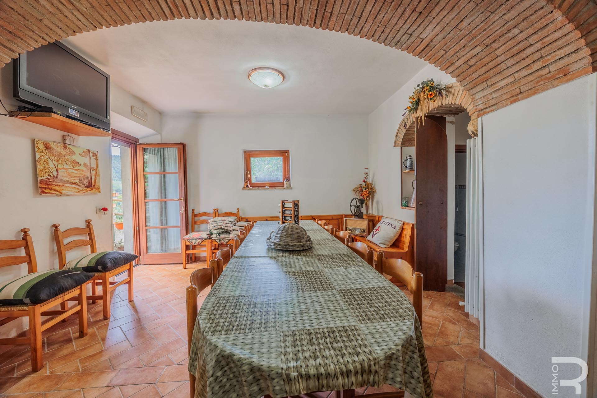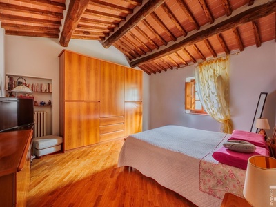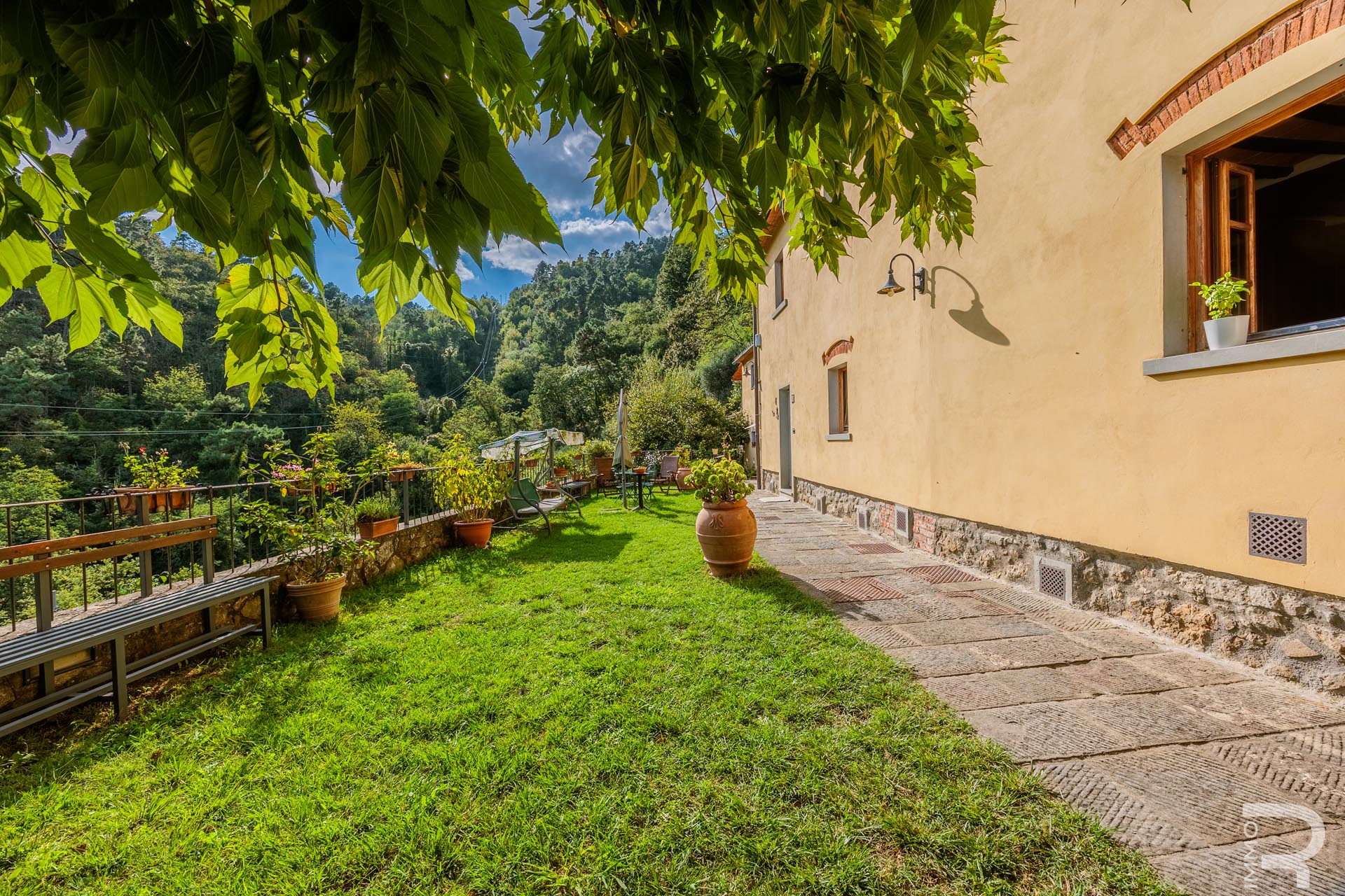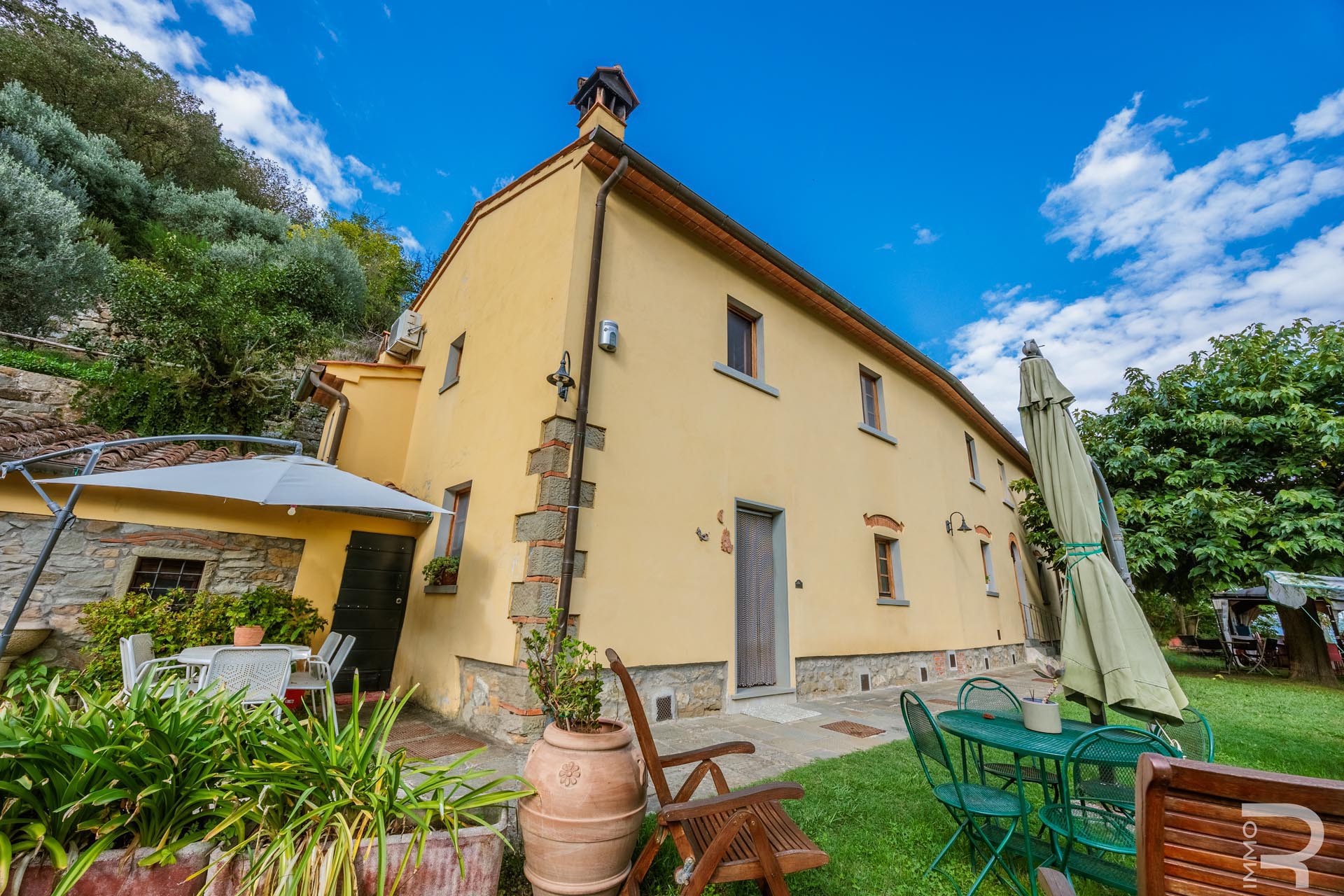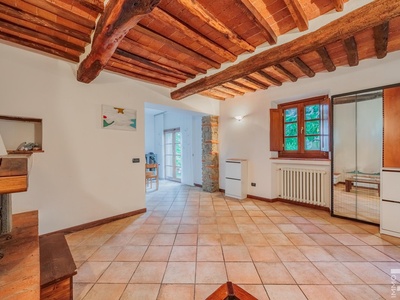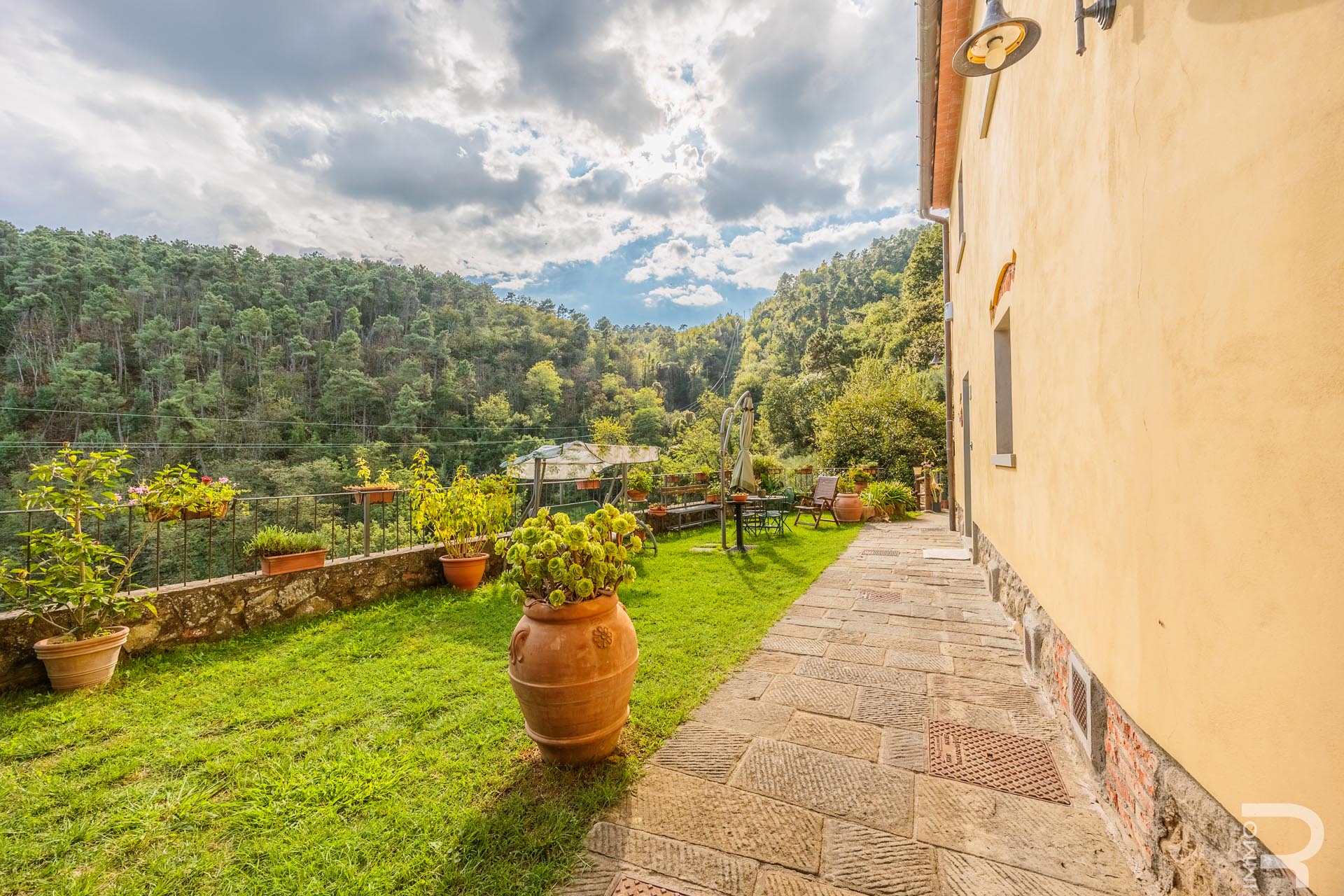 Gli spazi esterni sono terrazzati e progettati con tradizionali muri a secco, tipici della cultura edilizia toscana. Un giardino ben curato con area barbecue e forno a legna invita a godersi la vita di campagna e offre spazio per serate conviviali all'aperto. Qui è possibile trascorrere ore tranquille o festeggiare con la famiglia e gli amici.
