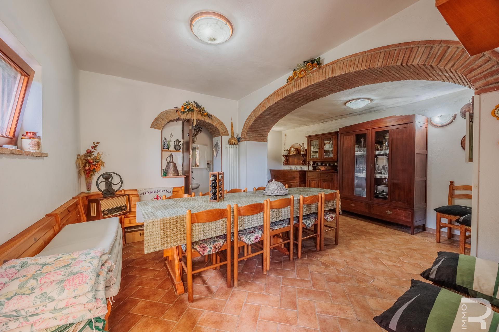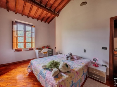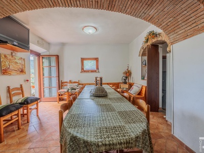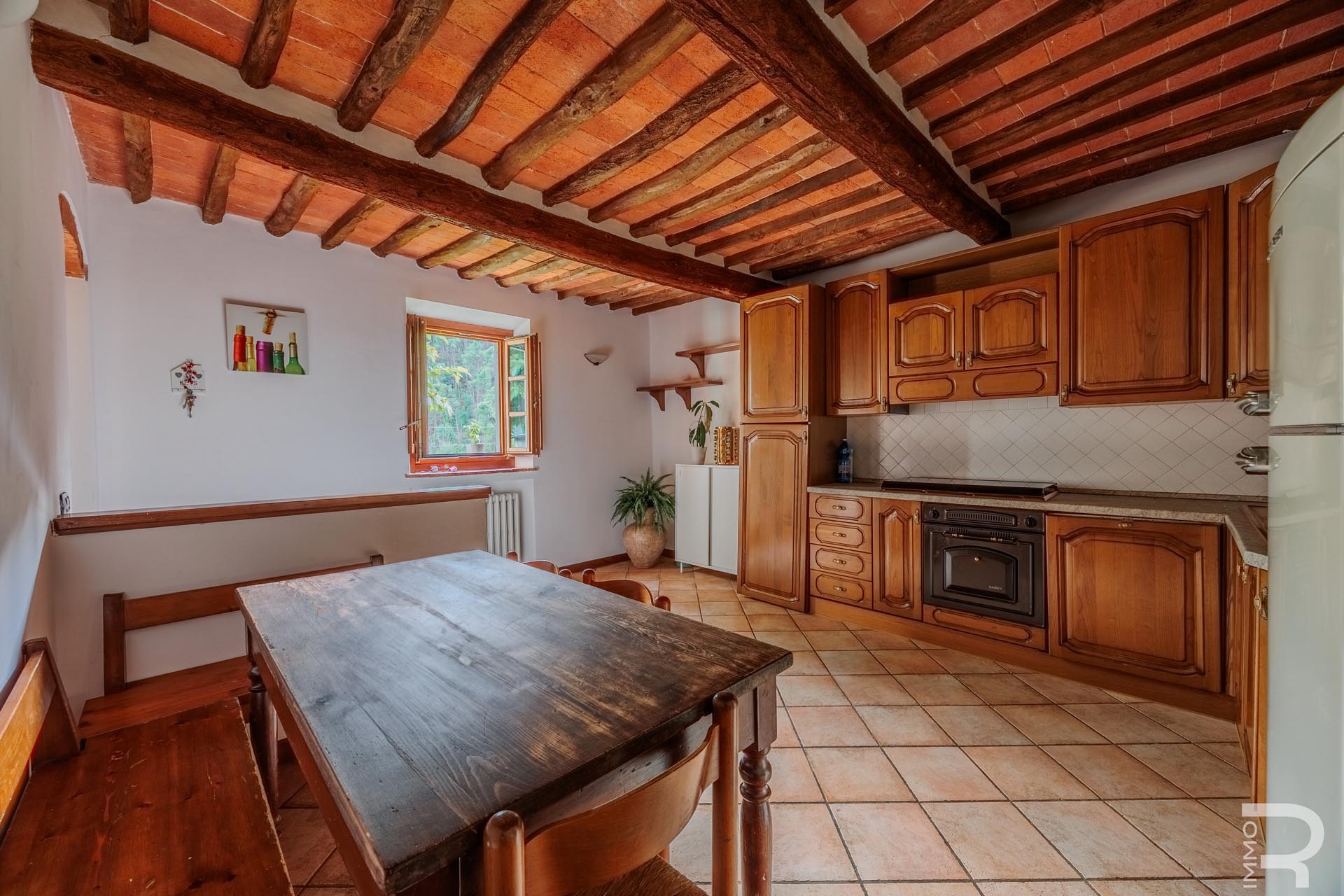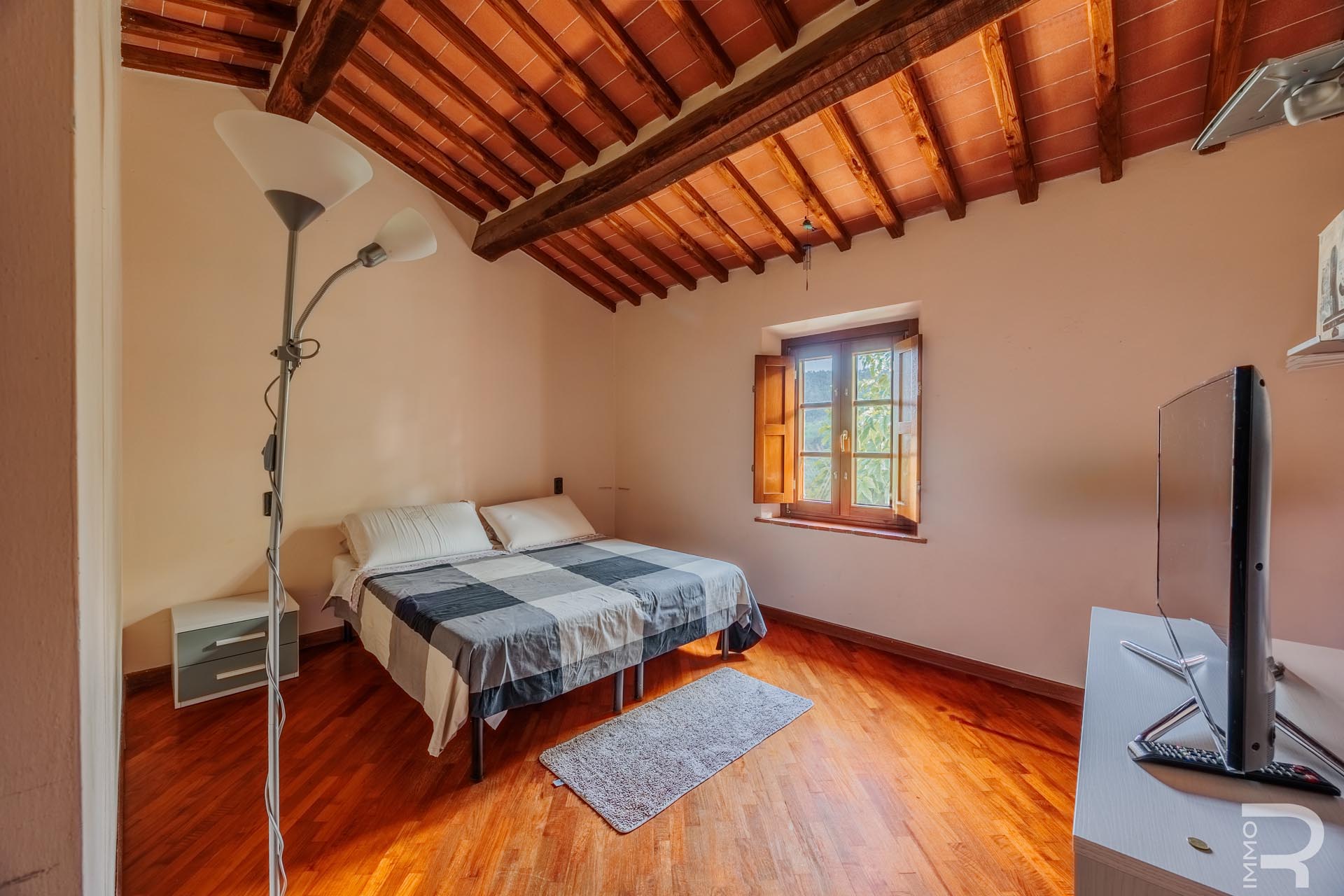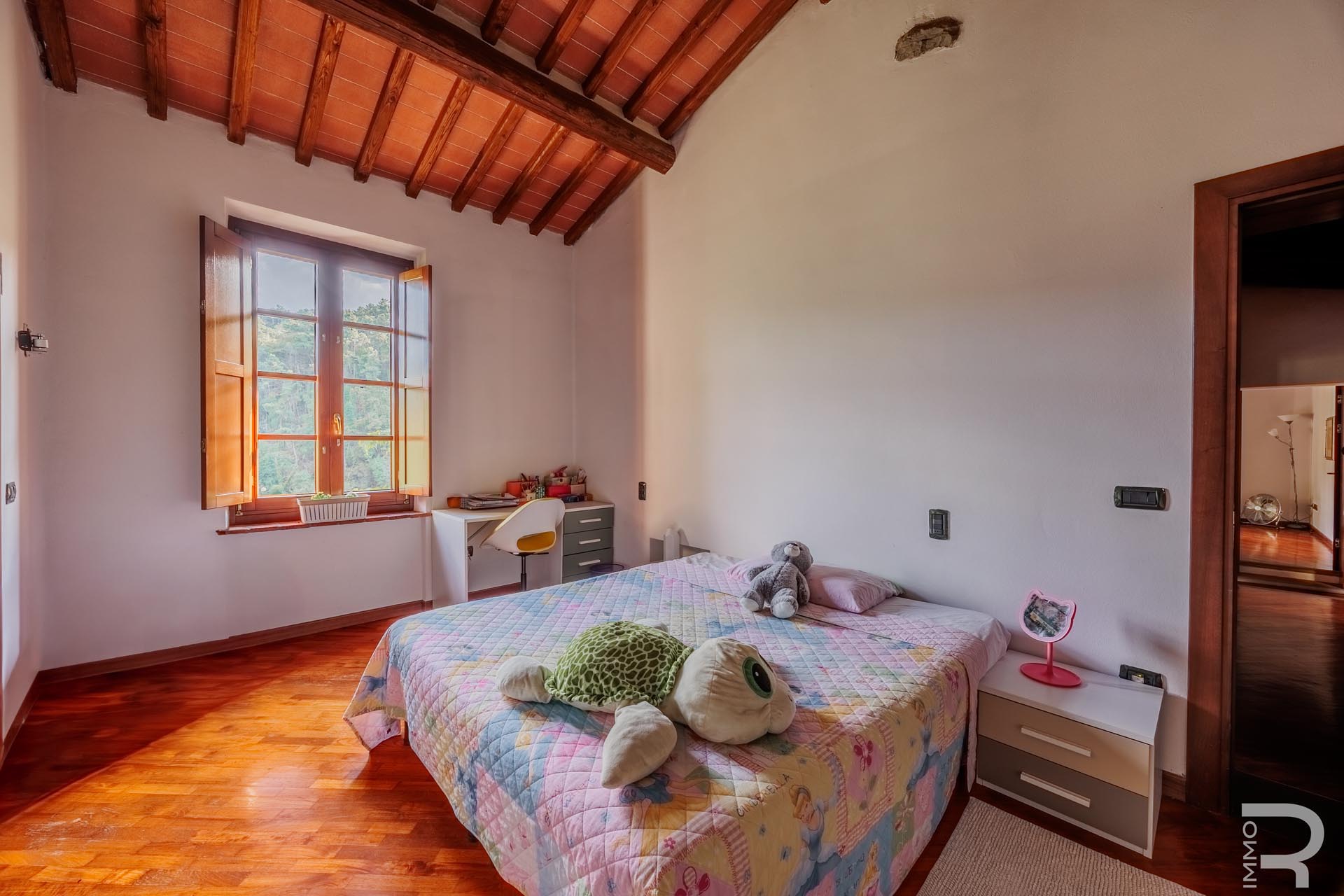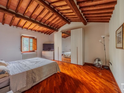 Gli spazi esterni sono terrazzati e progettati con tradizionali muri a secco, tipici della cultura edilizia toscana. Un giardino ben curato con area barbecue e forno a legna invita a godersi la vita di campagna e offre spazio per serate conviviali all'aperto. Qui è possibile trascorrere ore tranquille o festeggiare con la famiglia e gli amici.
