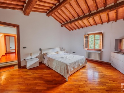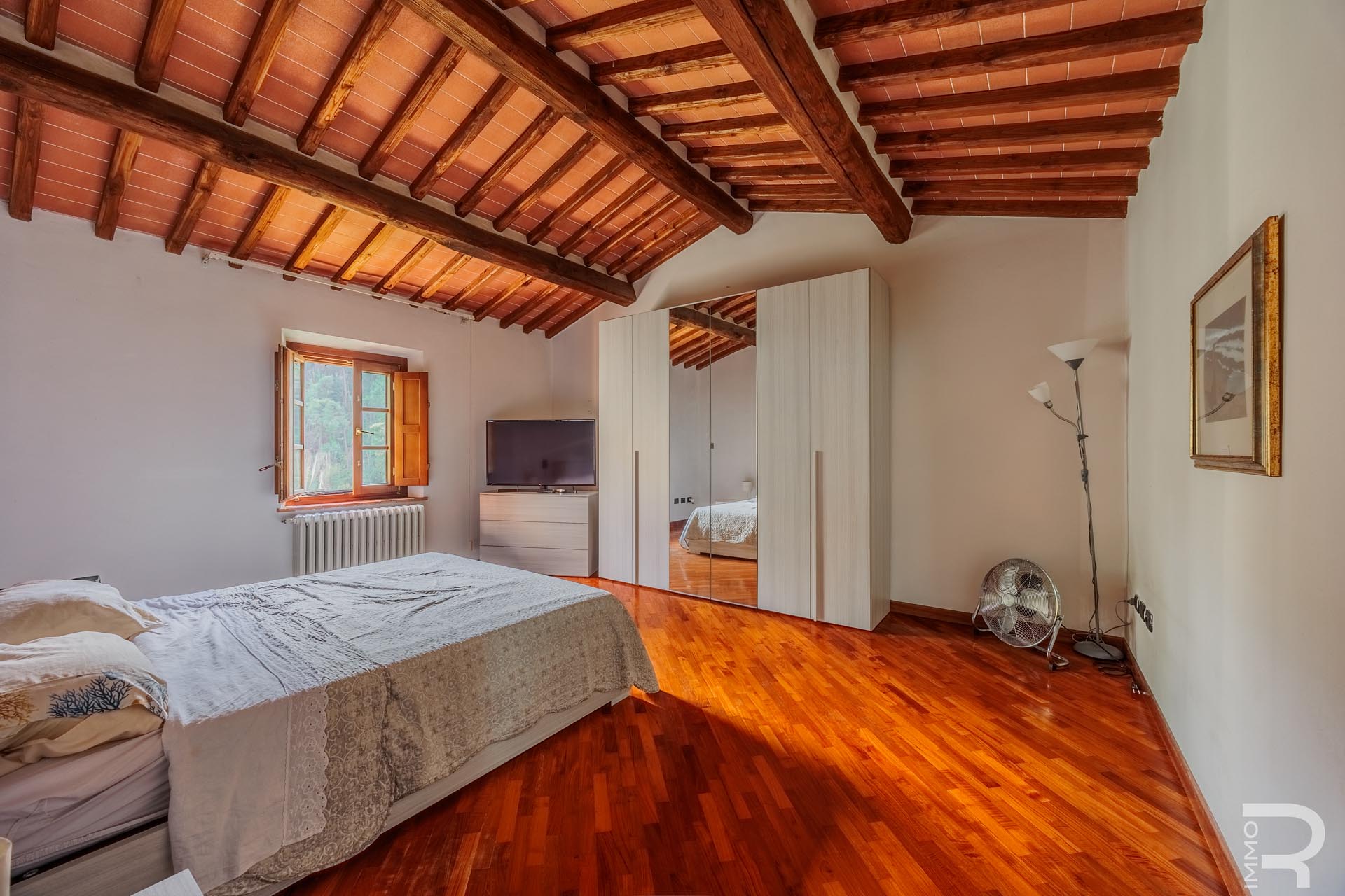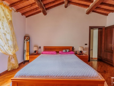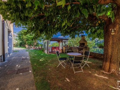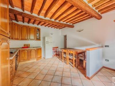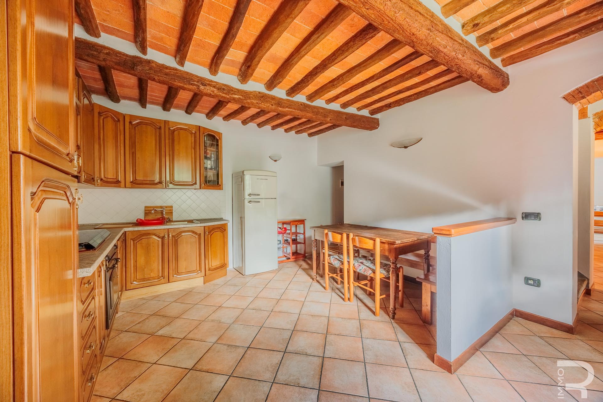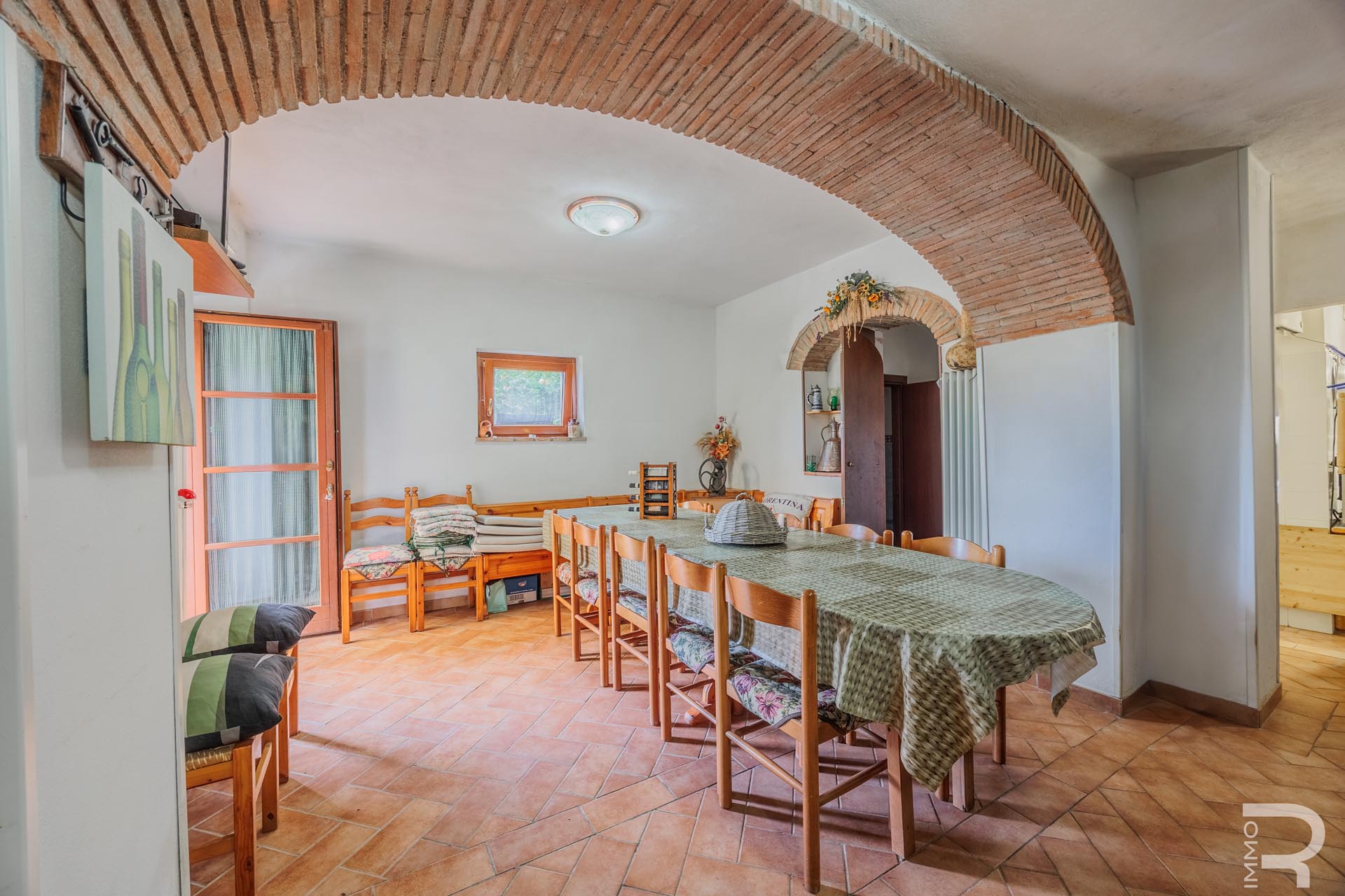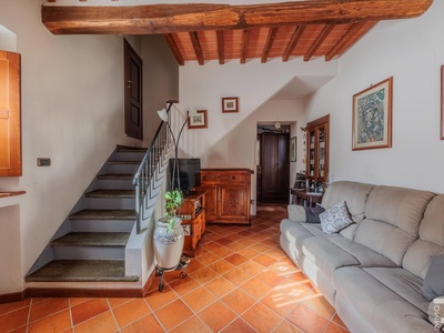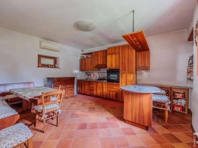 Gli spazi esterni sono terrazzati e progettati con tradizionali muri a secco, tipici della cultura edilizia toscana. Un giardino ben curato con area barbecue e forno a legna invita a godersi la vita di campagna e offre spazio per serate conviviali all'aperto. Qui è possibile trascorrere ore tranquille o festeggiare con la famiglia e gli amici.