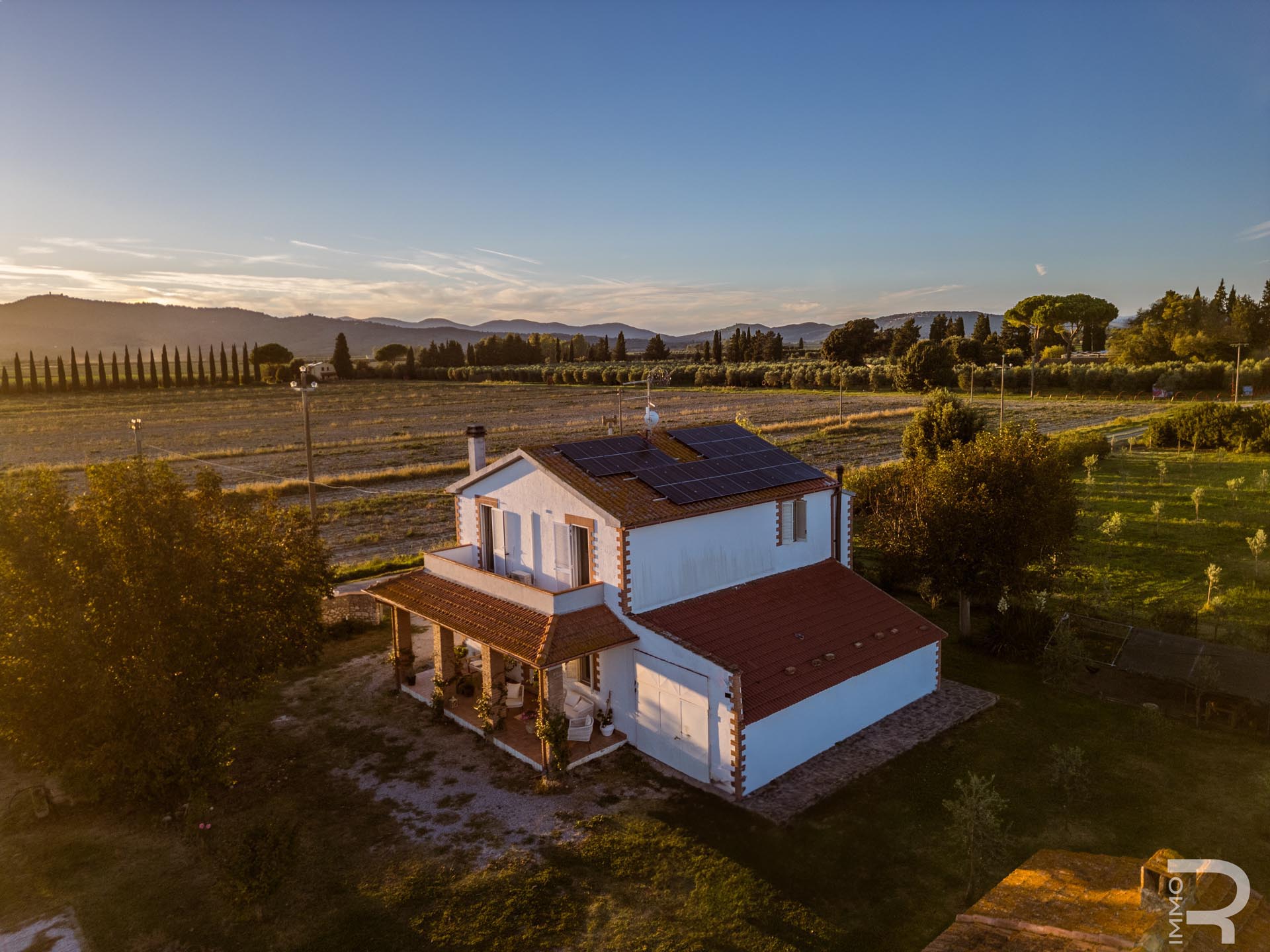 Questa splendida villa è immersa nel dolce paesaggio collinare della Maremma e unisce il comfort abitativo moderno al fascino toscano. La proprietà colpisce per il suo ampio giardino completamente recintato di circa 7.000 m², accessibile tramite un cancello automatico che garantisce la massima privacy. Numerosi ulivi e alberi da frutto, tra cui circa 100 ulivi ad alto rendimento, creano un'atmosfera tranquilla e naturale, un luogo ideale per godersi la vita all'aria aperta.