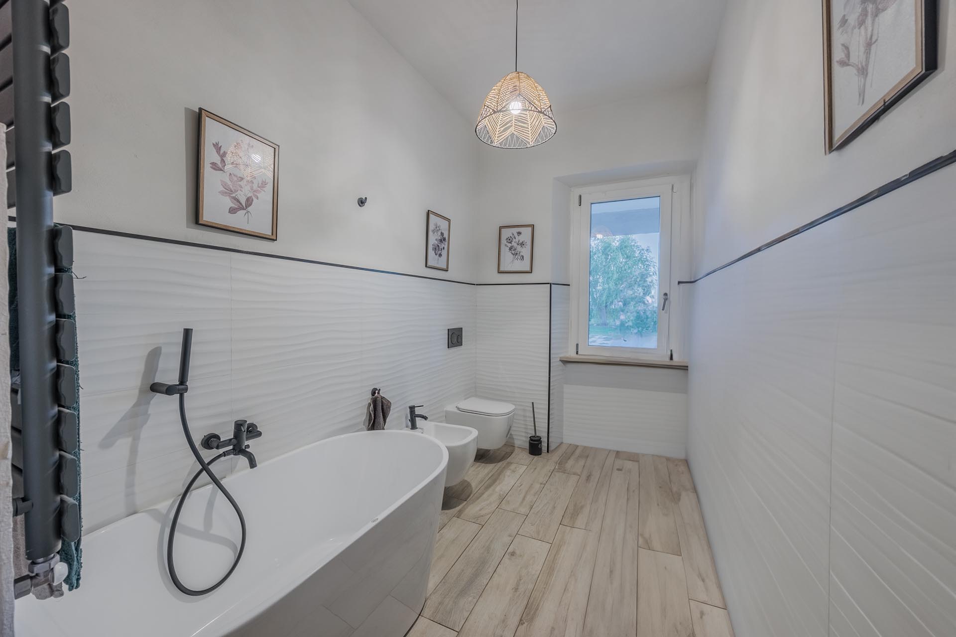 La villa è stata completamente ristrutturata nel 2023 e oggi si presenta in condizioni eccellenti. Grazie al moderno isolamento termico e a un impianto fotovoltaico con una potenza di 5 kW e un accumulatore da 10 kW, non solo è efficiente dal punto di vista energetico, ma è anche ecologica e attrezzata per il futuro.