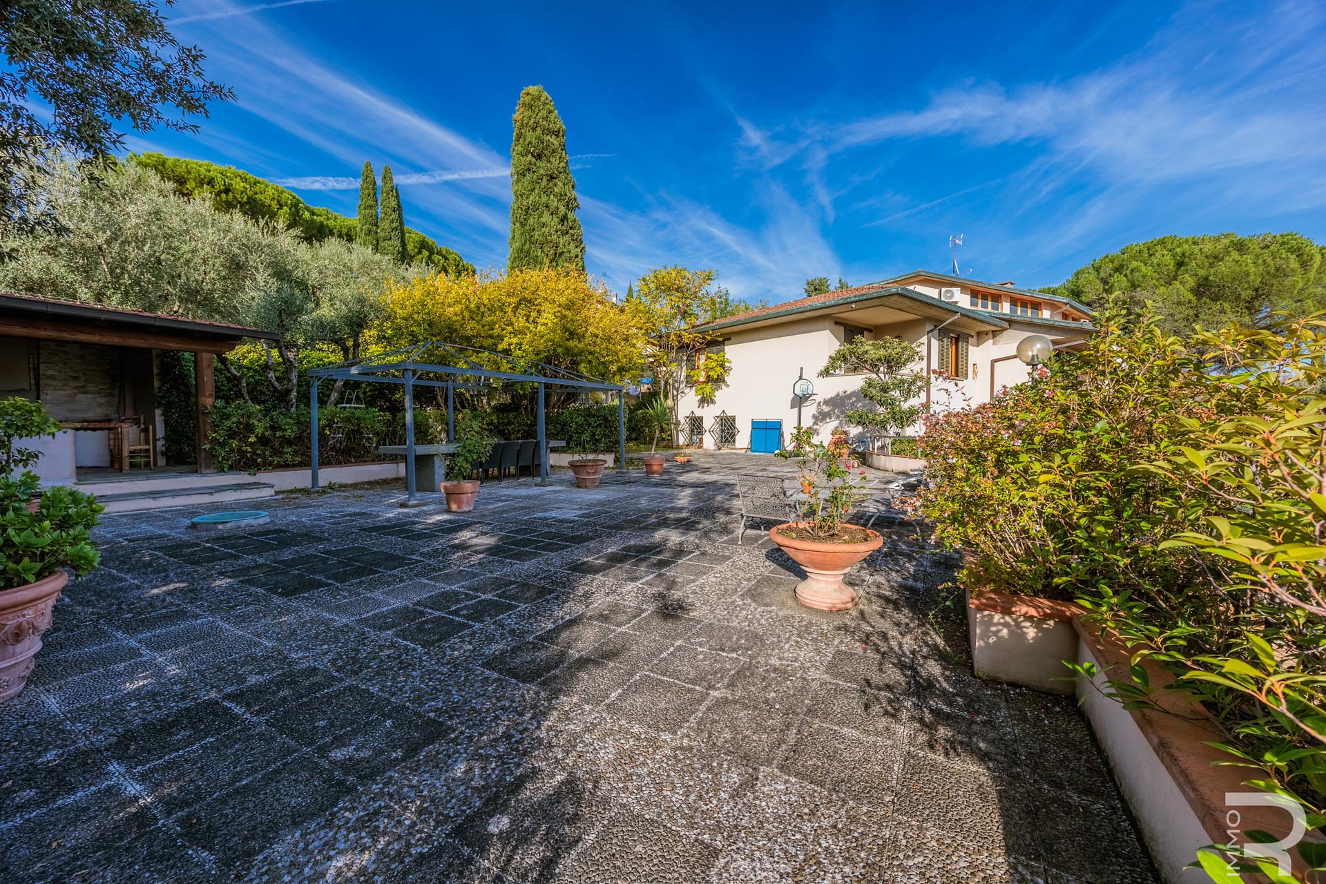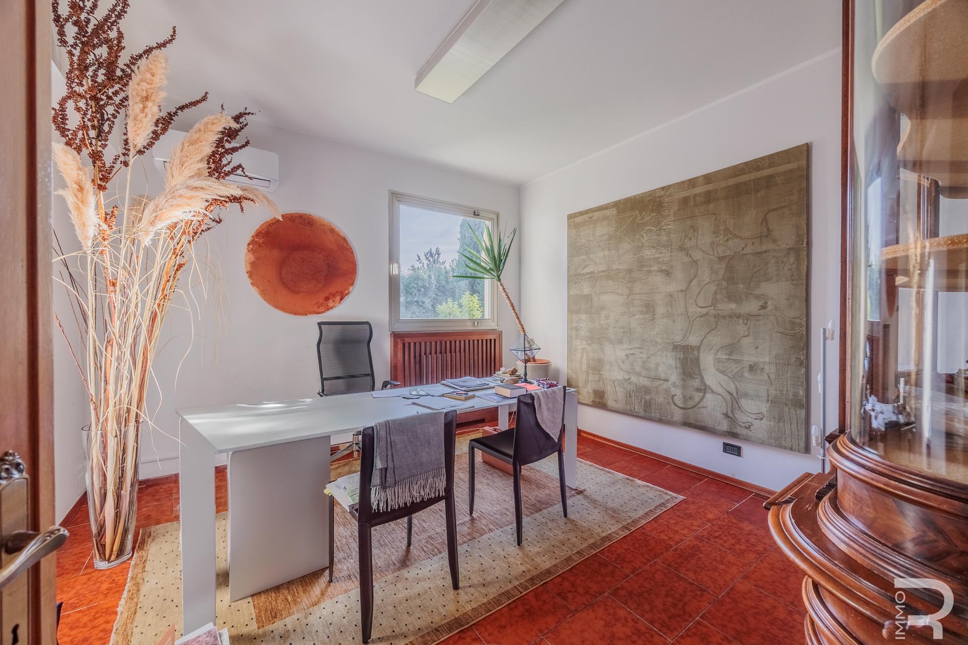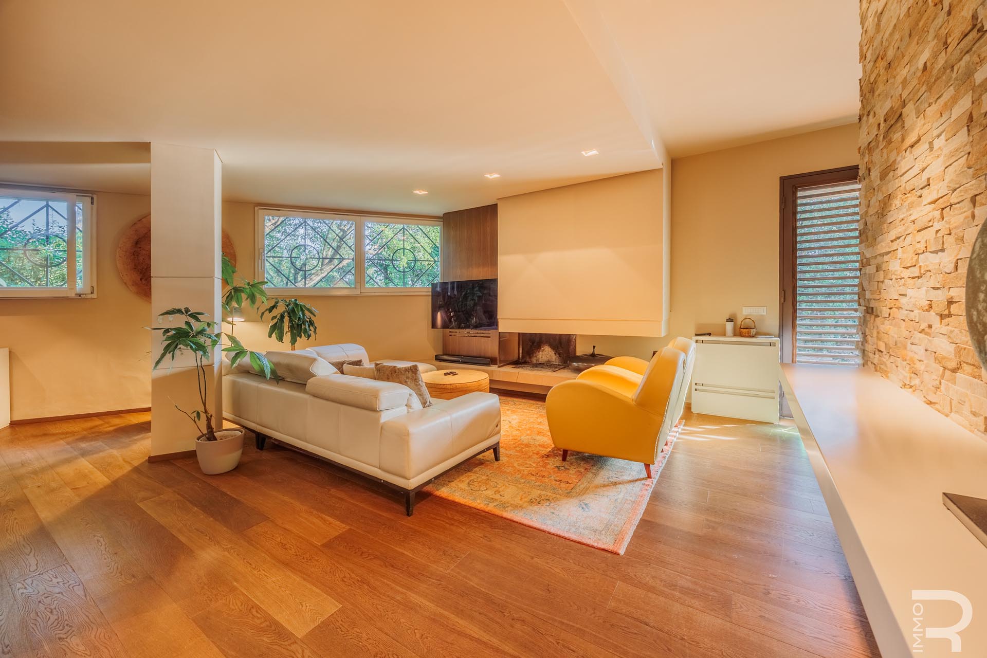 Questa straordinaria villa affascina per la sua unicità e l'architettura inconfondibile, progettata dal rinomato architetto Zetti. Si trova su un ampio terreno recintato di 4.000 mq, che offre assoluta privacy e molteplici possibilità di utilizzo.