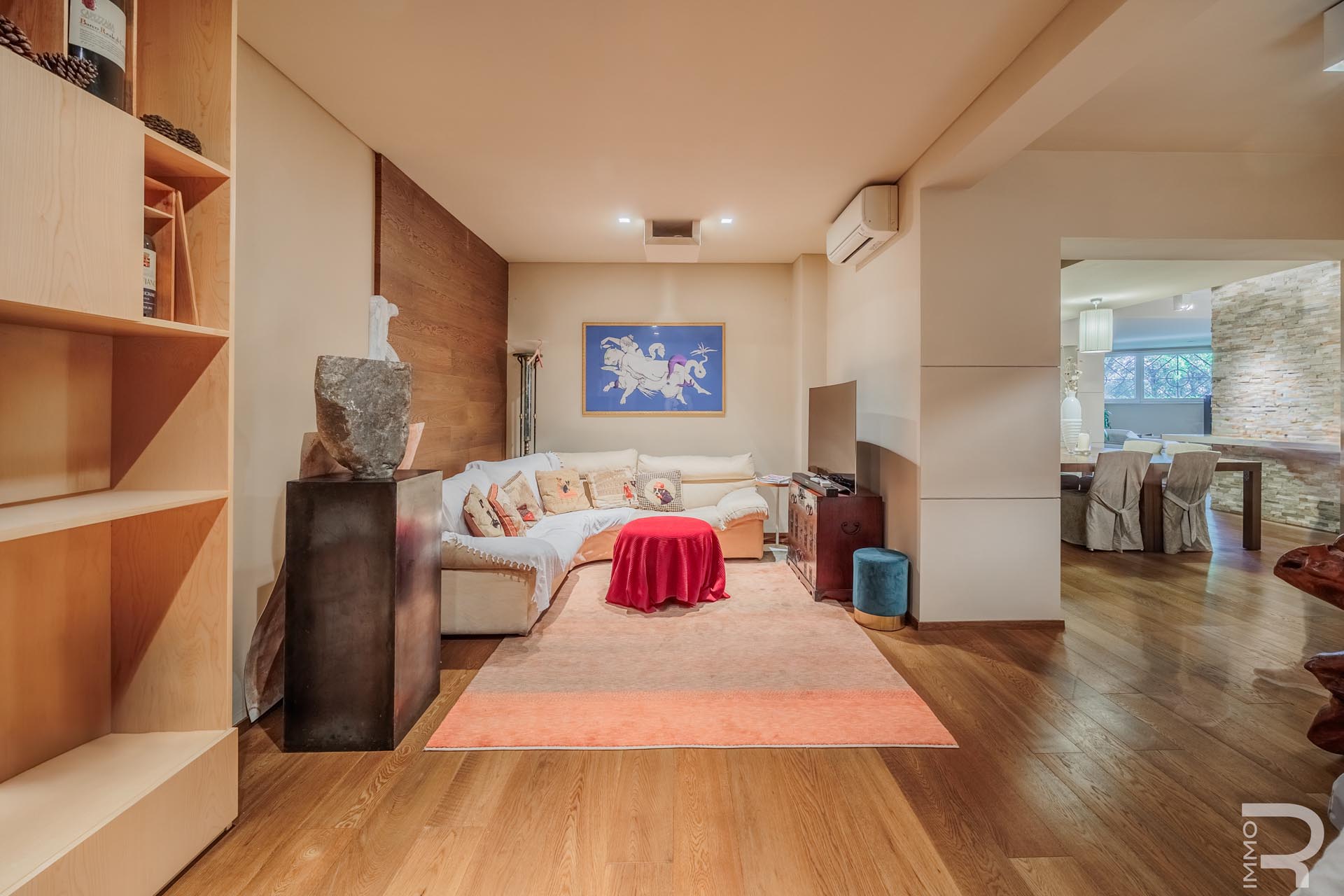 Il piano terra ospita diversi uffici e un lussuoso appartamento ristrutturato nel 2015. Qui lo spazio funzionale incontra il comfort contemporaneo, ideale per gli ospiti o come zona giorno di rappresentanza.