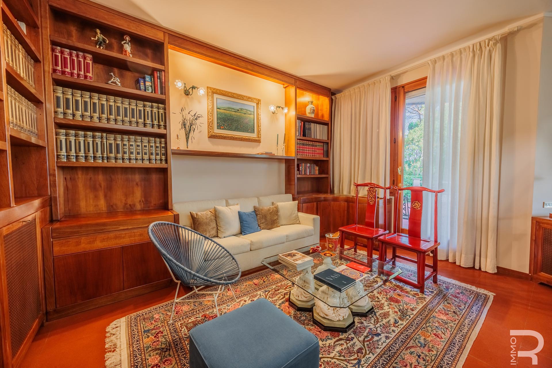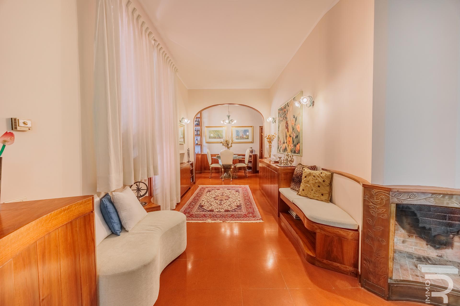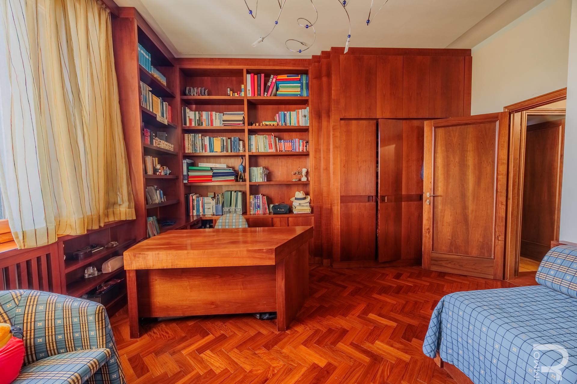 Al primo piano si trova l'appartamento padronale completamente arredato in stile anni '70, dotato di mobili su misura di altissima qualità . Le ampie finestre lasciano entrare molta luce e creano un'atmosfera luminosa e accogliente, che conserva il fascino del design originale.