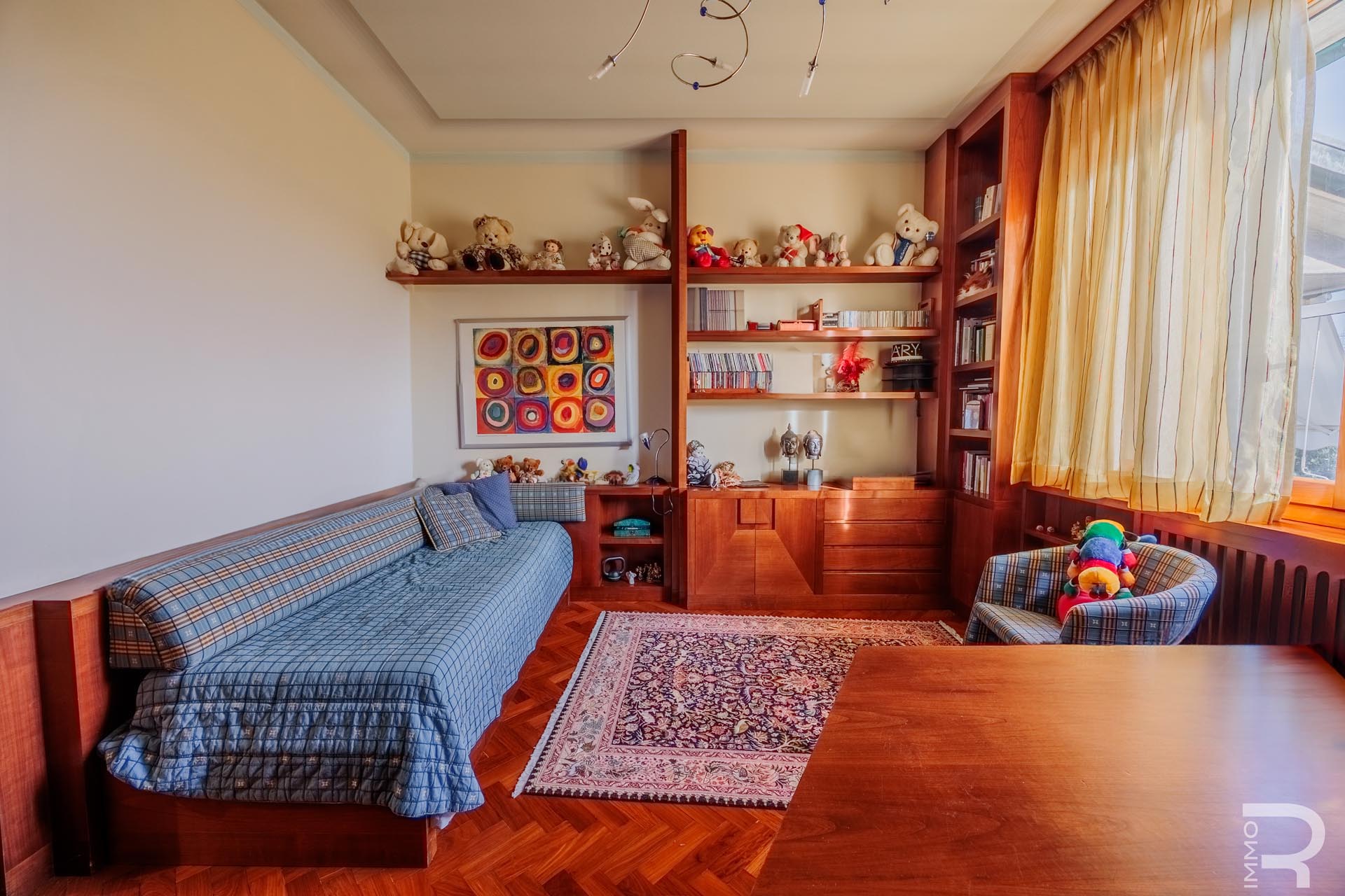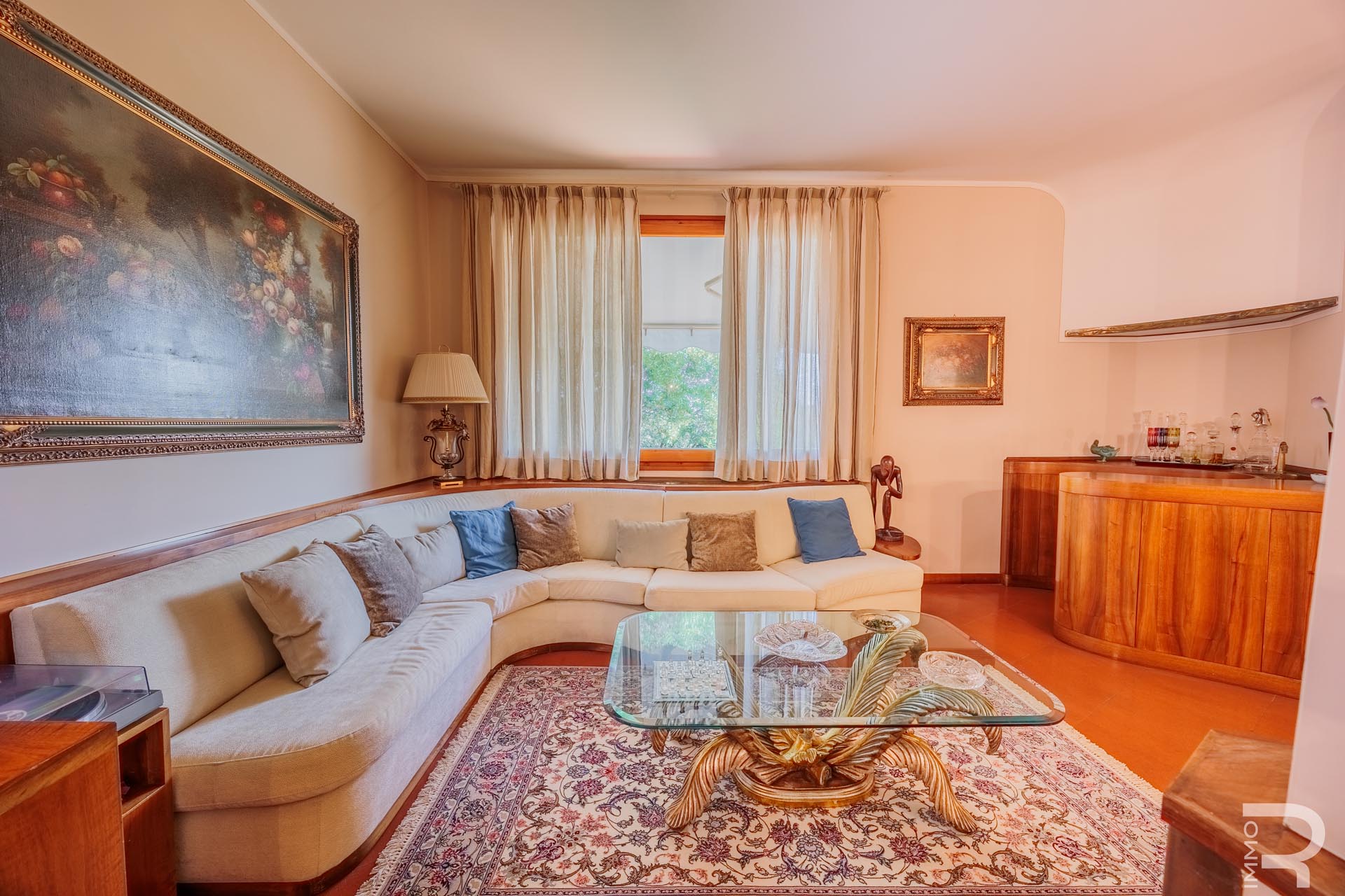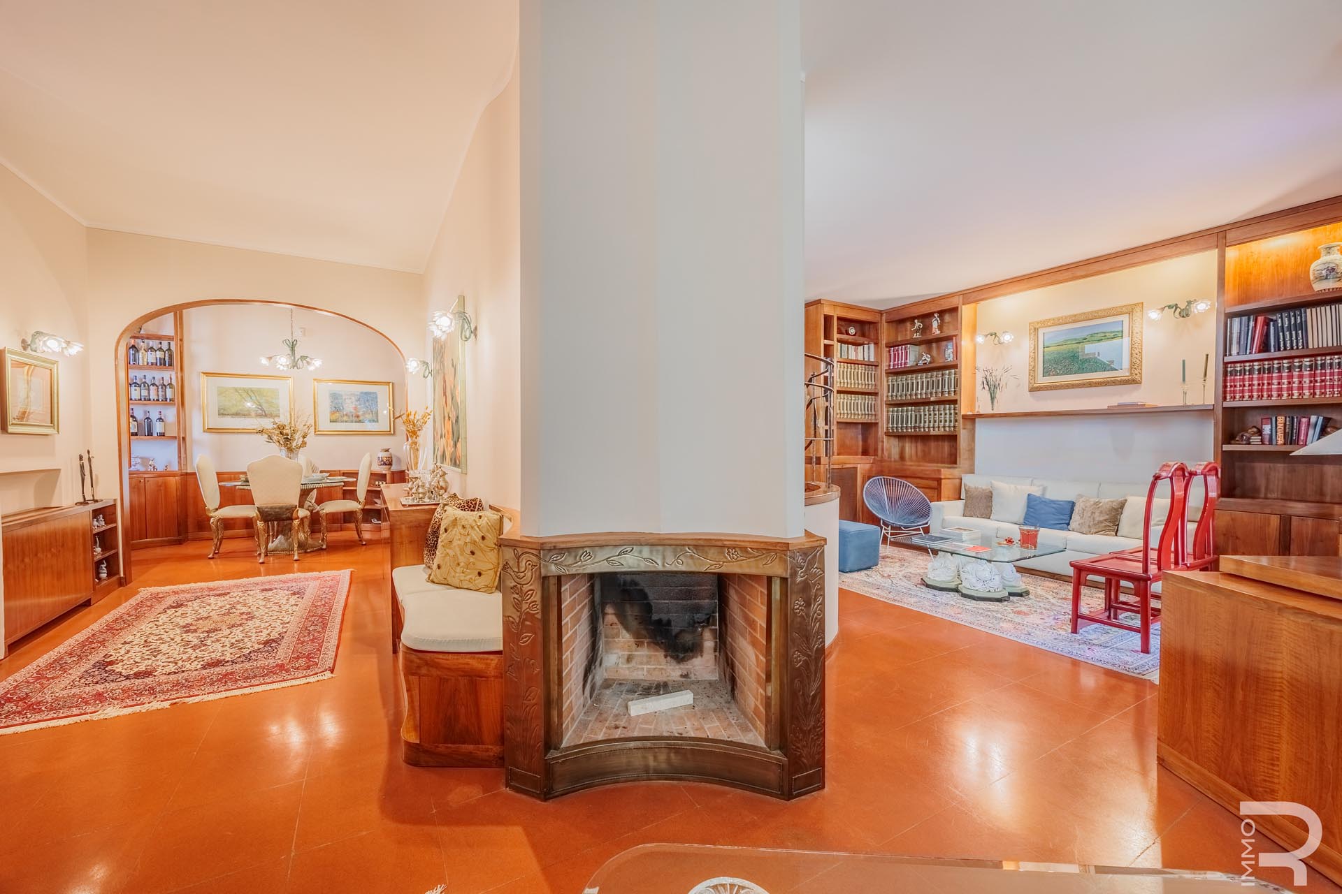 Al primo piano si trova l'appartamento padronale completamente arredato in stile anni '70, dotato di mobili su misura di altissima qualità . Le ampie finestre lasciano entrare molta luce e creano un'atmosfera luminosa e accogliente, che conserva il fascino del design originale.