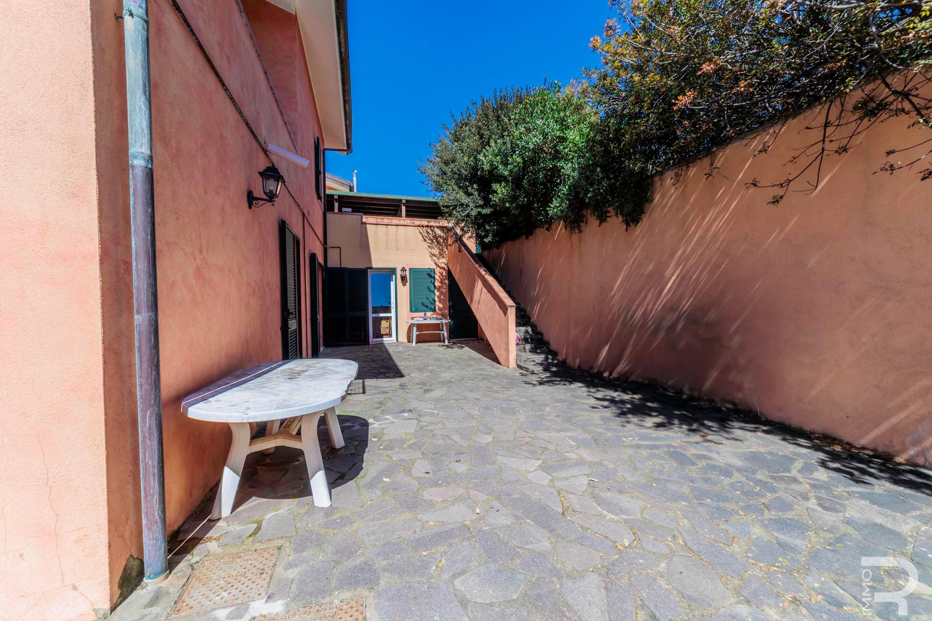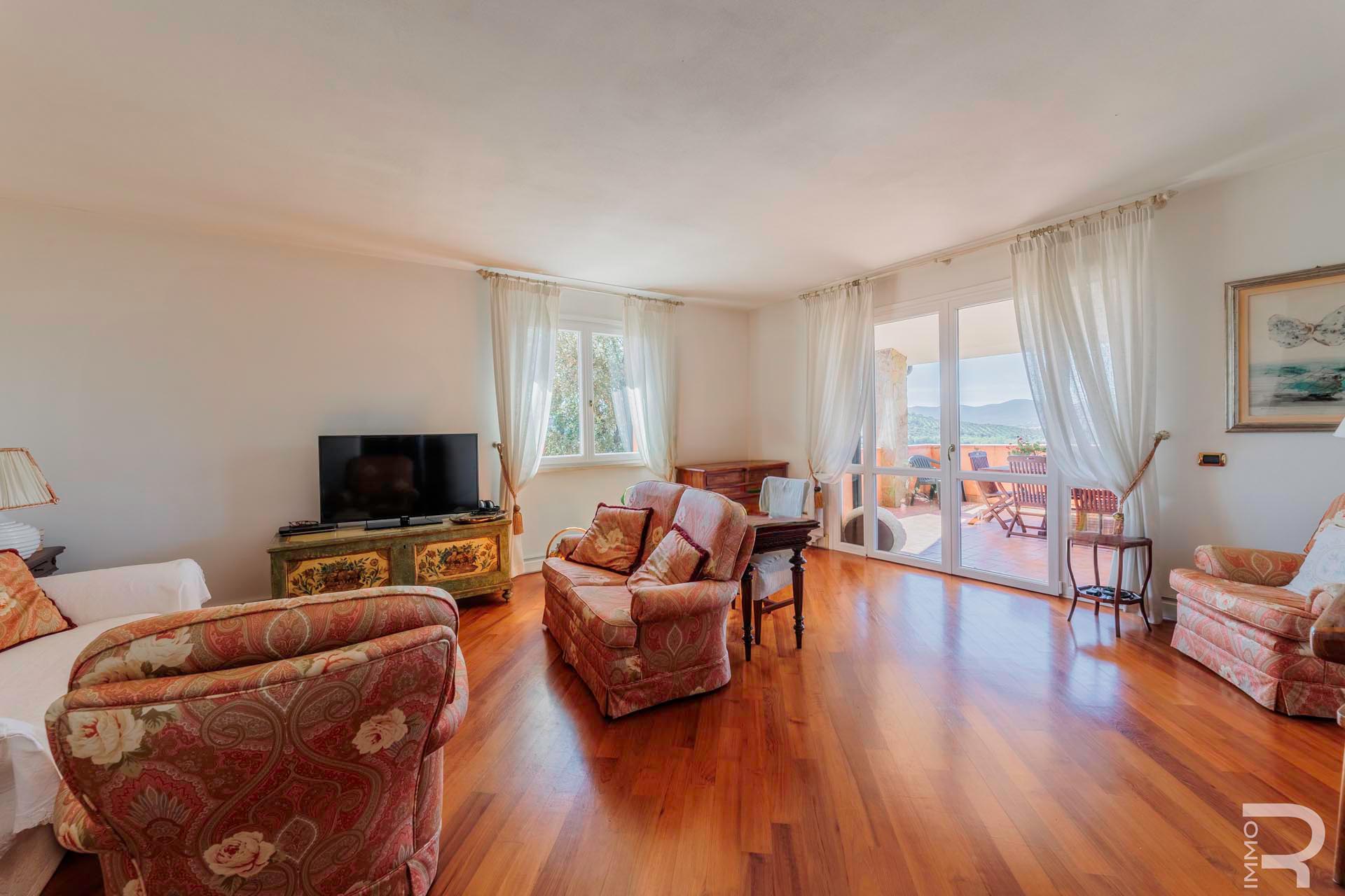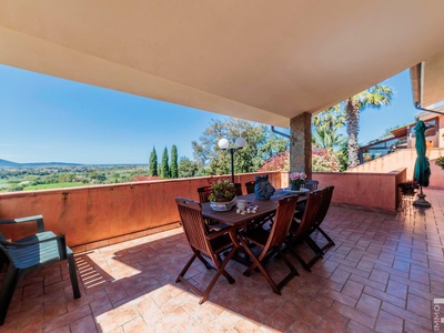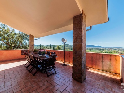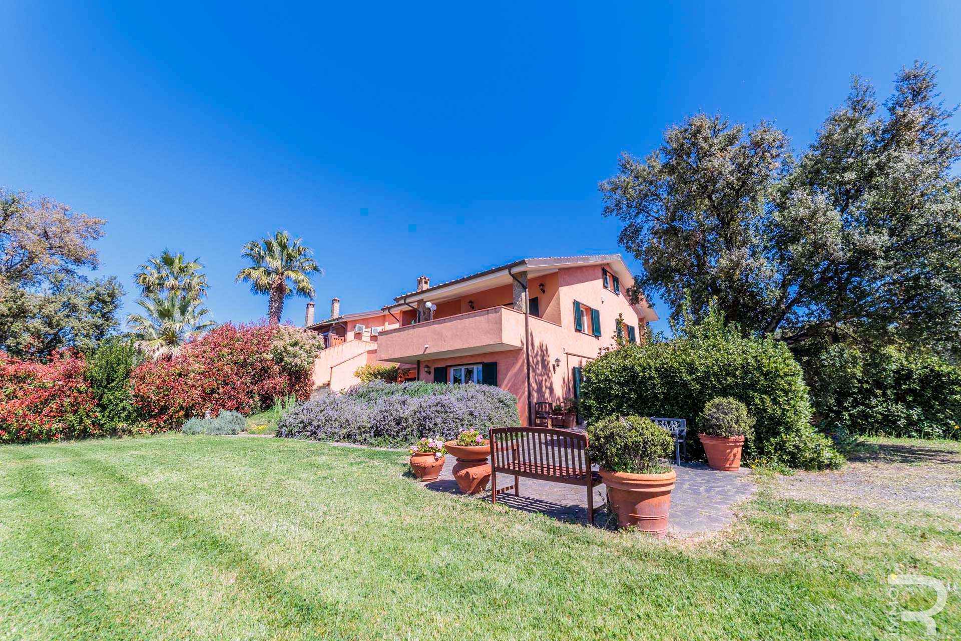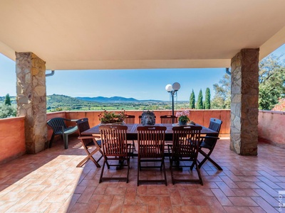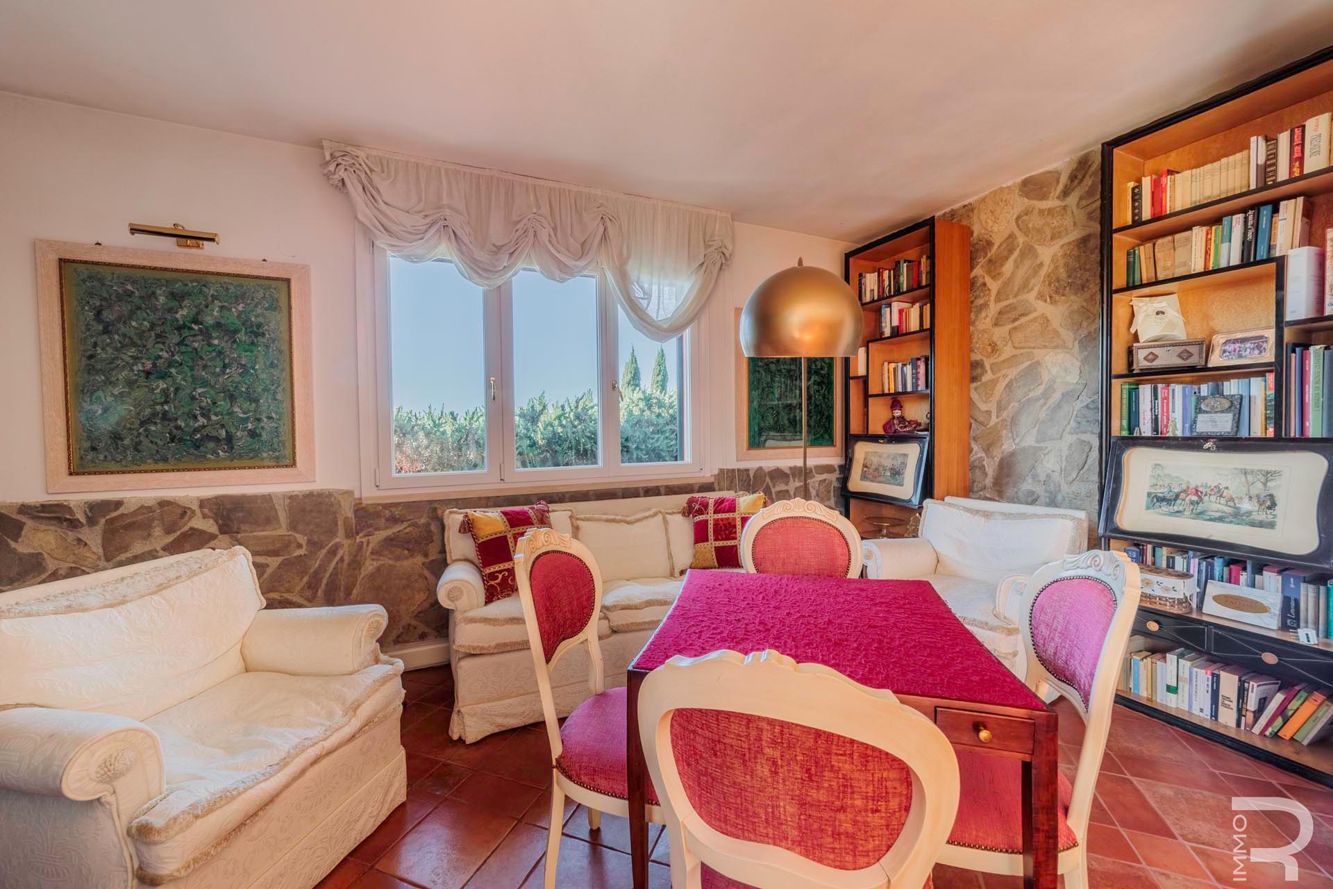 Il cuore dell'area esterna è l'ampio giardino privato di 1,8 ettari, fiancheggiato da un elegante viale di cipressi che fa da cornice suggestiva alla proprietà . Da qui si apre una vista spettacolare sulle dolci colline circostanti e sul mare scintillante in lontananza.